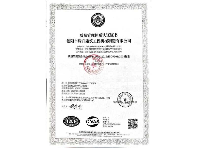 ООО Дэян Тэншэн Производство Строительных Машин было основано 7 августа 2009 года. Это компания с ограниченной ответственностью, глубоко укорененная в сфере строительной техники и ориентированная на производство как на основу своей деятельности. Юридический адрес компании: деревня Умяоцунь, группа 13, посёлок Тяньюань, район Цзинъян, город Дэян, провинция Сычуань (расположена в зоне концентрации тяжелого машиностроения Дэяна, что обеспечивает значительные преимущества в плане промышленной кооперации). Компания стабильно функционирует и сформировала интегрированную бизнес-модель «НИОКР – производство – сбыт – аренда – послепродажное обслуживание».